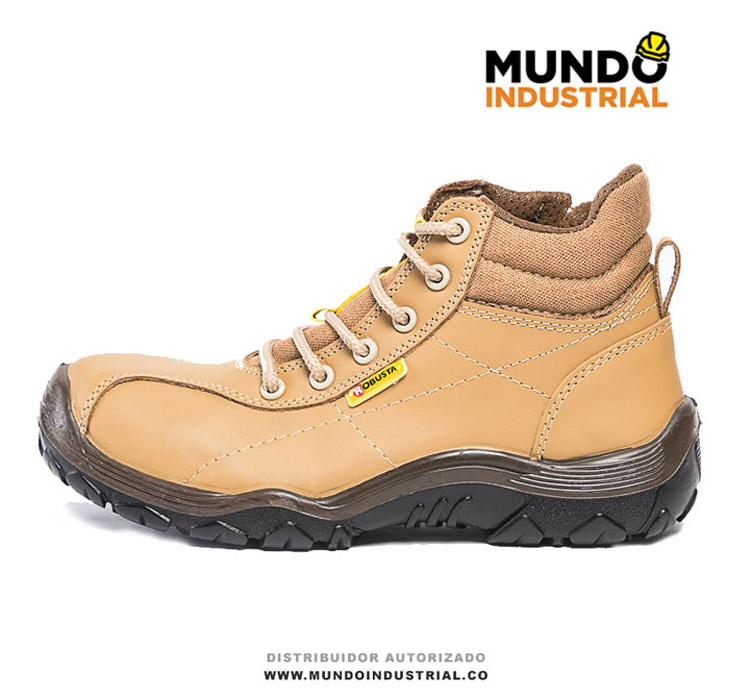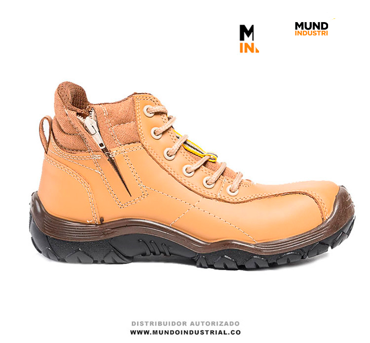 Bota Robusta Raider Zipper Oro. Bota de seguridad para mujer que incorpora sobre punta de seguridad en composite certificada en Norma EN12568 Aislante al choque eléctrico según norma ASTM 2413.
