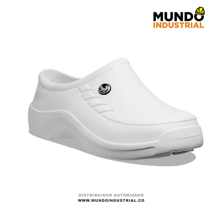 Calzado fabricado en material EVA, de alta durabilidad y que presenta alta resistencia al desgaste, posee características impermeabilizantes que evitan la proliferacion de bacterias, bondades que son inherentes al proceso de la materia prima conocida como Etilenvinilacetato (EVA)