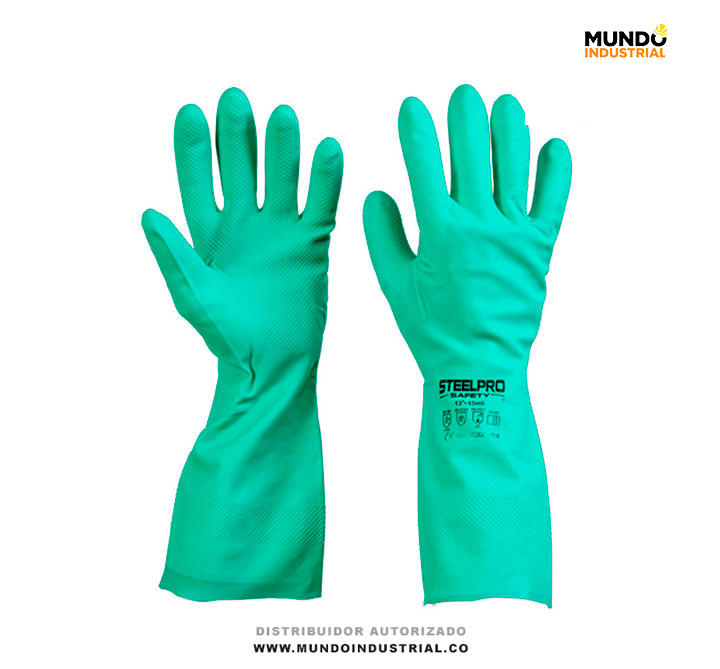 Guantes de Nitrilo verde Steelpro Nitrilsafe especialmente diseñado para proveer protección química, resistencia y versatilidad. Son resistentes a productos cáusticos, grasas de animales, aceites, hidrocarburos y proveen protección extra contra abrasión, punción y cortes.