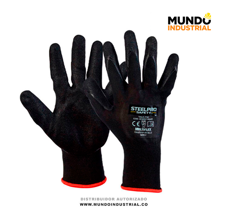 Guante Steelpro multiflex Poliester Nitrilo Sandy en tejido poliéster con recubrimiento en palma de nitrilo, brinda protección a contacto con aceites y abrasión.