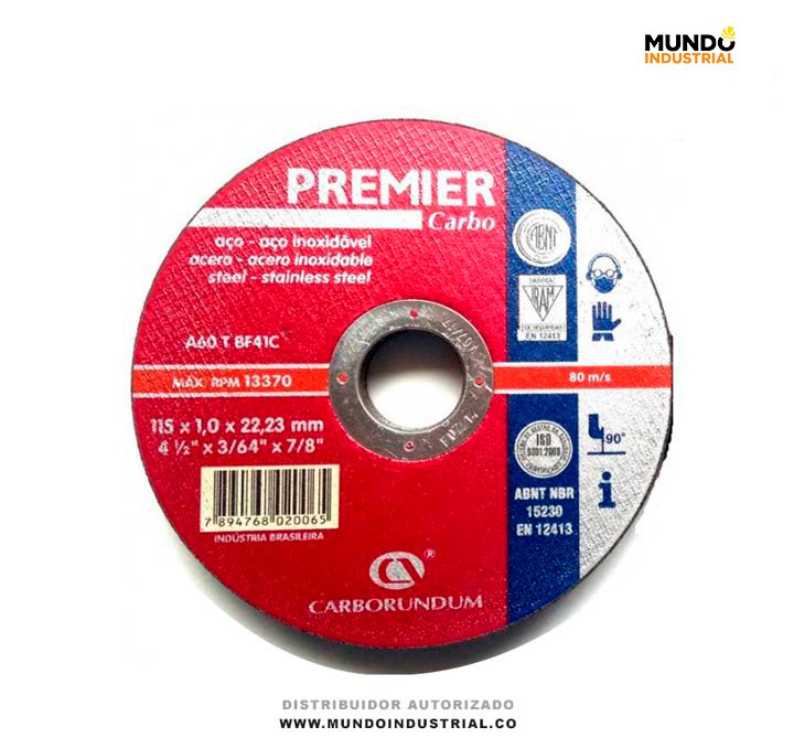 Medidas:-115mm x 1,0mm x 22,23mm-4-1/2″ x 3/64″ x 7/8″Max-13.300 RPM-80 m/sCarburundum: líderes en la industria de abrasivos, construcción y maderas.