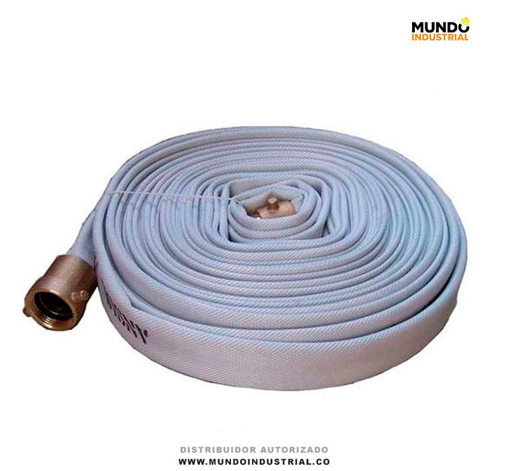 Manguera sencilla certificada contra incendio, tiene una presión de trabajo de 150 PSI y de rotura de 450 PSI. Fuerte, compacta y practica.