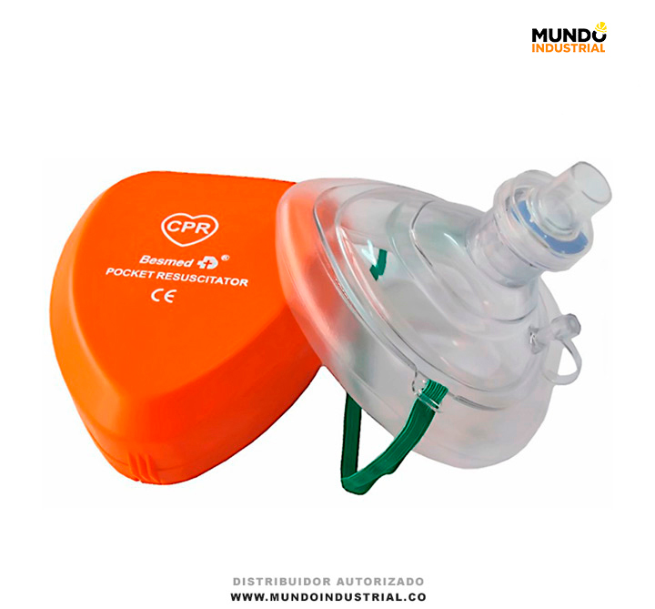 Máscara desechable para reanimación cardio-pulmonar (rcp), uso adulto – niño, transparente, borde inflable con válvula unidireccional, filtro antibacteriano, banda elástica para mayor ajuste facial, viene en estuche rígido de plástico
