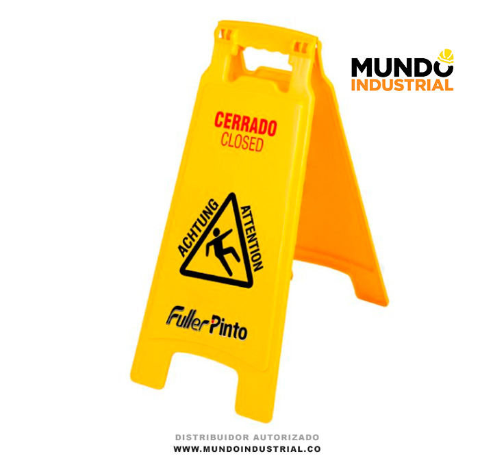 Señal de Piso Mojado Fuller Pinto Liviana, versátil y sumamente eficaz para la prevención de riesgos. Aviso en español e inglés. Se puede plegar para mayor comodidad al guardarse o trasladarse