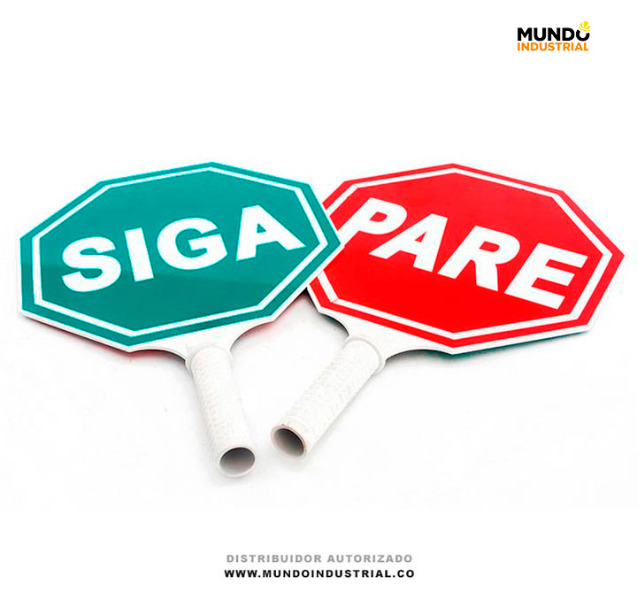 Paletas de Señalización Paletas pare y siga son utilizadas para el control del tránsito, Vehículos, Aviones, etc. y permitir el paso de peatones en zonas de obras públicas. Tamaño de 30 cm fabricadas en polietileno de alta densidad, con base cónica y reflectivo.