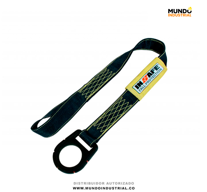 Elemento parte de un sistema personal de detención de caídas, adaptador de anclaje (conector) portátil en reata nomex/Kevlar, cumple con la norma ASTM F887-16, fácil de usar, liviano con Argolla en reata y argolla dieléctrica con capacidad de resistencia 5000 lbf.