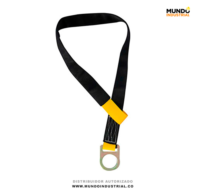 Una argolla D grande en un extremo y ojo en cinta poliéster en el otro. Cumple con recomendaciones de OSHA. El punto de anclaje debe poseer una carga mínima de ruptura de 5000 lbf