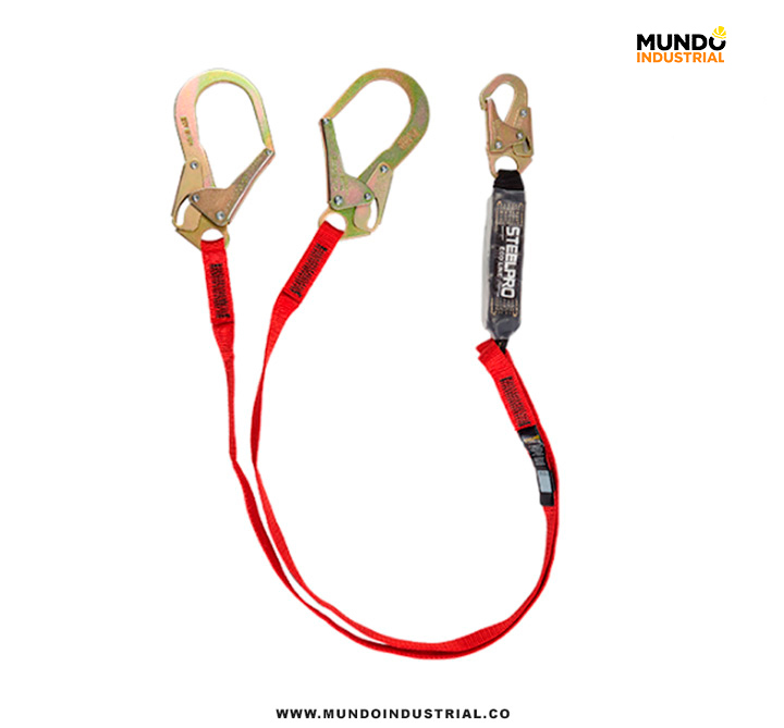 Eslinga Doble terminal «Y» en reata color Rojo para detención de caídas, con doble gancho estructurero de 2¼» de apertura y mosquetón de ¾»para conexión a la argolla dorsal.