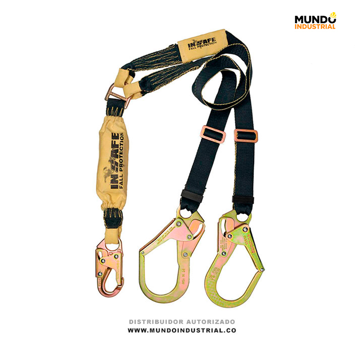 Paquete absorbedor de energía tiene una elongación máxima de 1,07 m (42 pulgadas), en caso de un de caída reduce la fuerza de impacto a 900 lbf (4kN) o menos. Longitud desde 1.4 m hasta 1.8 m