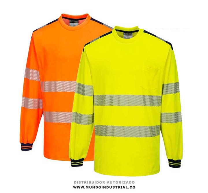 Camiseta de seguridad manga larga con acabado suave, con cintas reflectivas bicolor, en espalda y brazos en poliéster.